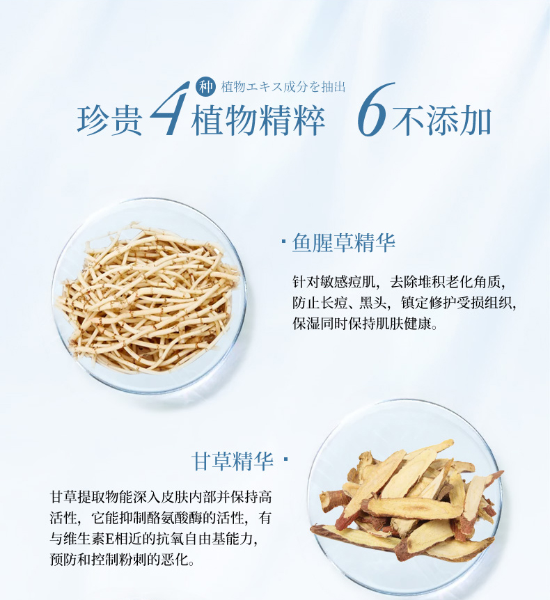 丝胶精华、鱼腥草精华、茶树油精华、甘草精华、雏菊精华